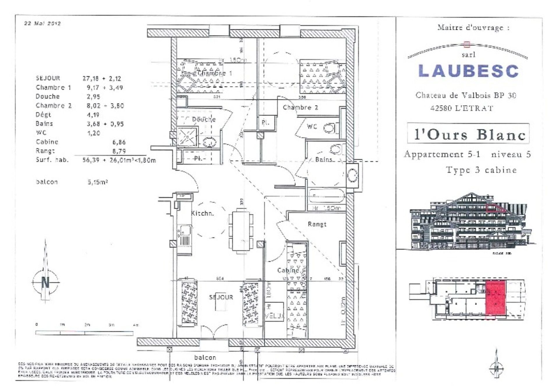 Cet appartement bénéficie d'une superificie de 60,26m2, situé au 5eme éta de de la résidence il offre une vue dégagée.