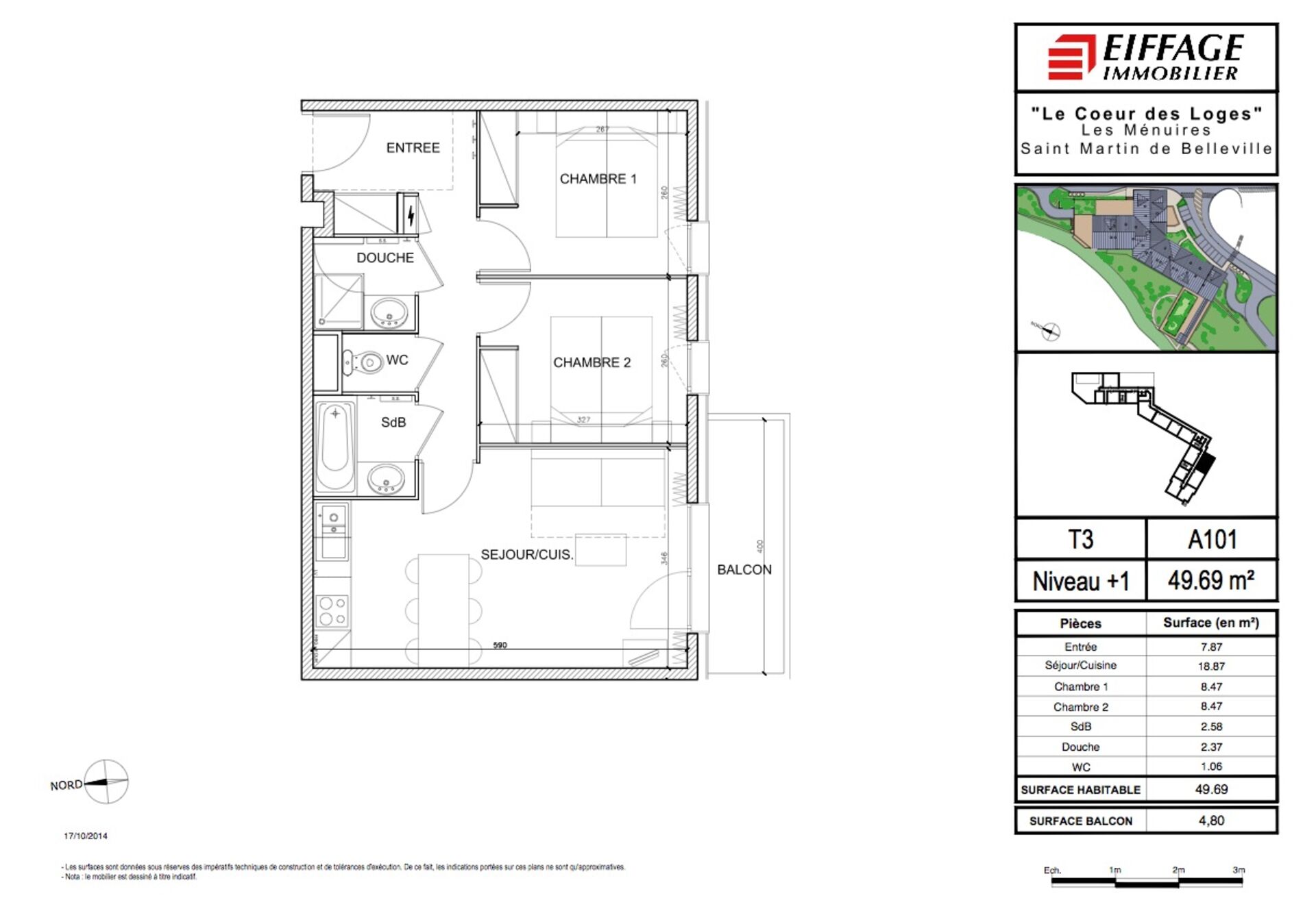Appartement T3 exposé sud au sein d'une nouvelle réalisation "Le Coeur des Loges" aux Menuires, station familiale.