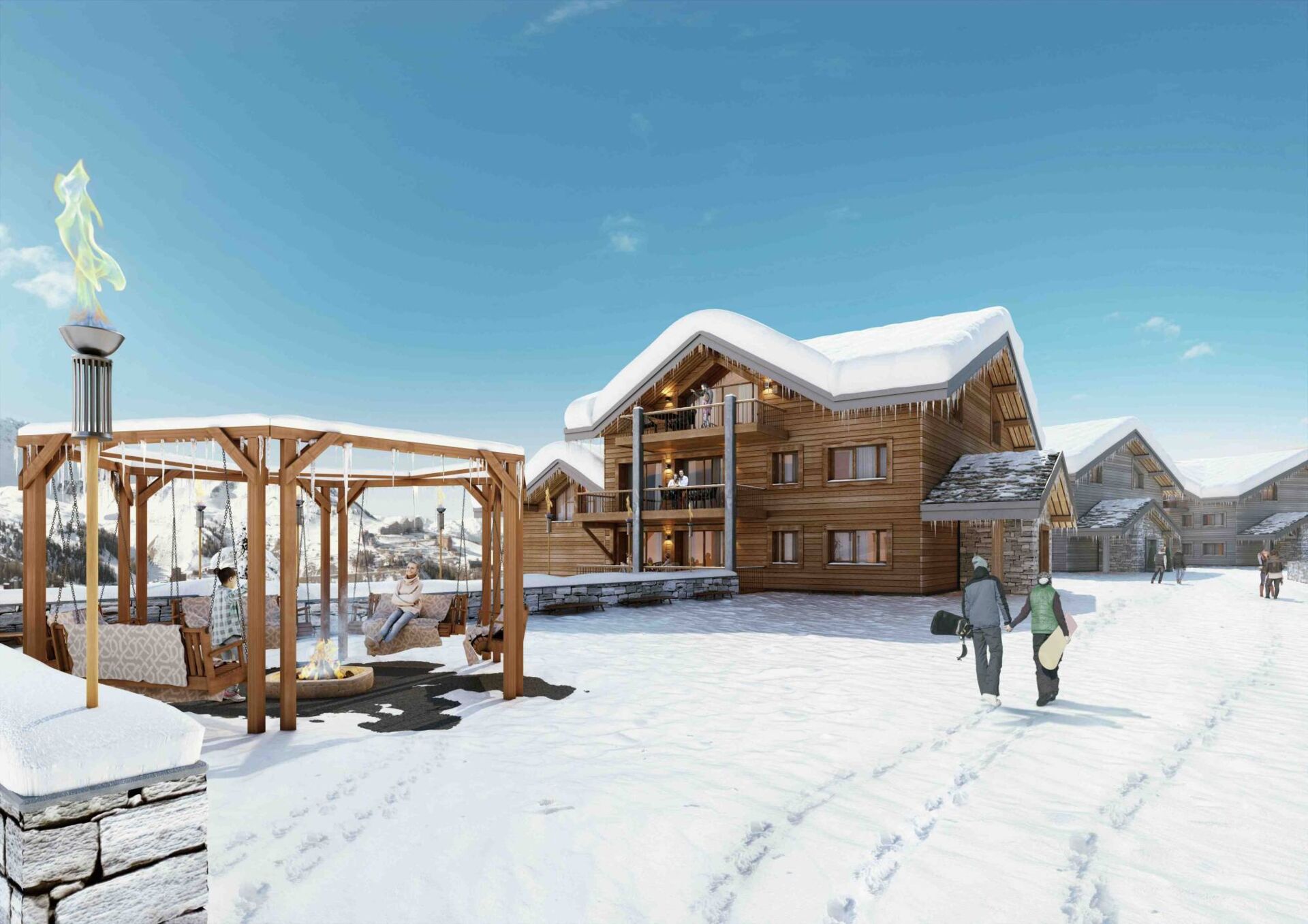 Skis aux pieds, vous profitez du domaine skiable du Paradiski avec plus de 600km de pistes. La construction en chalets semi pierre et semi bois confère un véritable charme à ce nouveau projet.