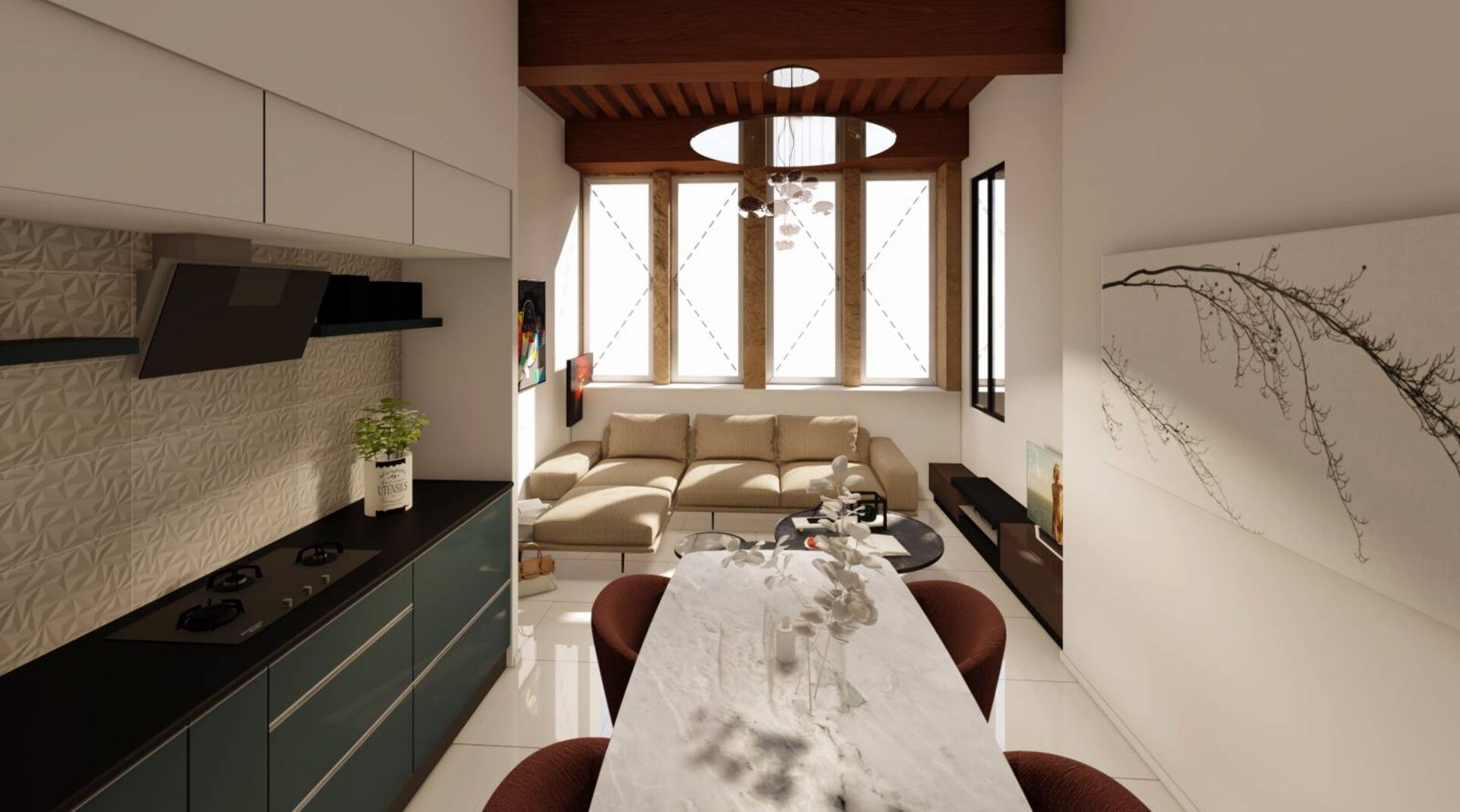 - d'une cuisine équipée sur un grand séjour