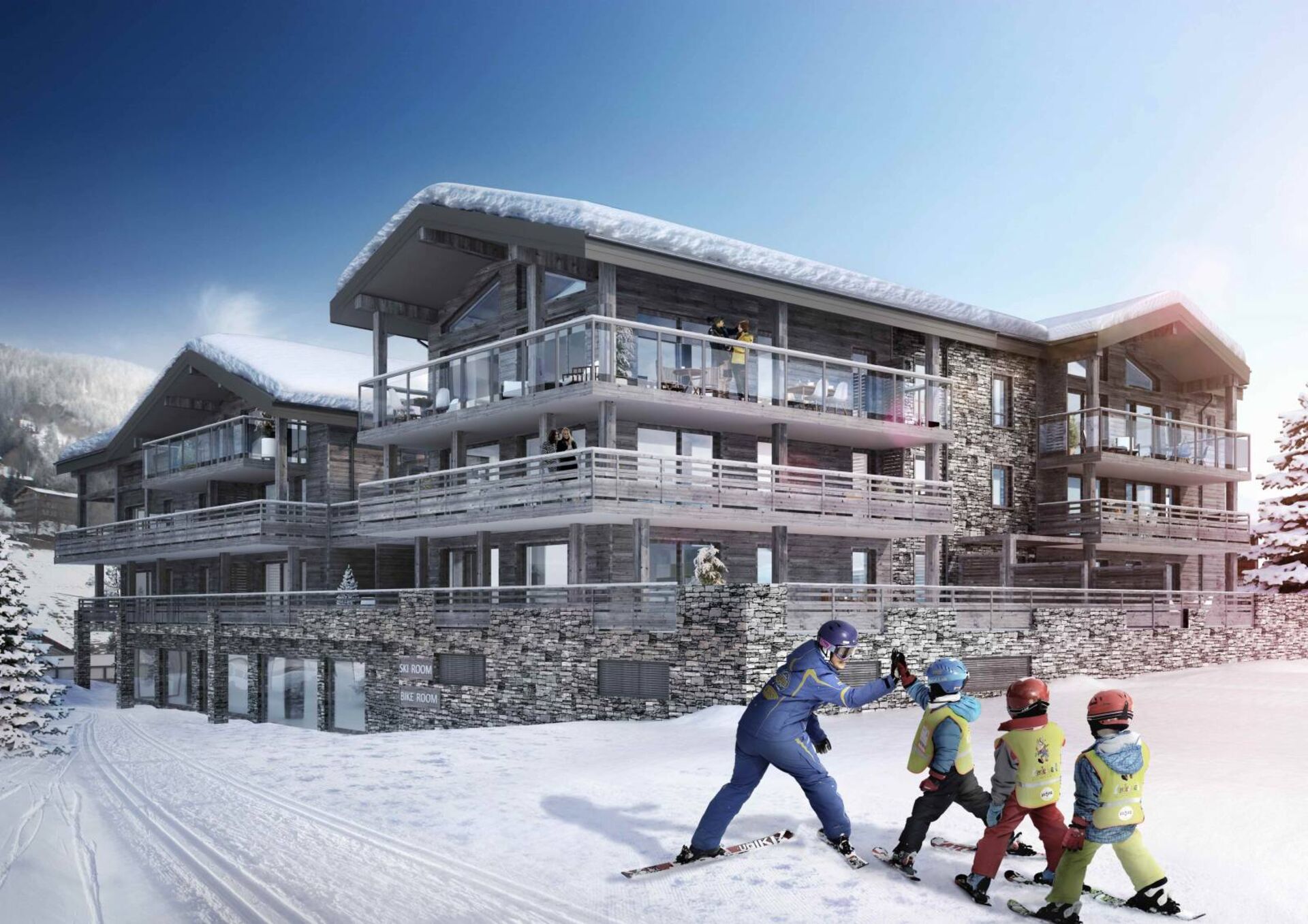 La résidence s'intégrèrent parfaitement dans un environnement d'exception au coeur du village des Gets.