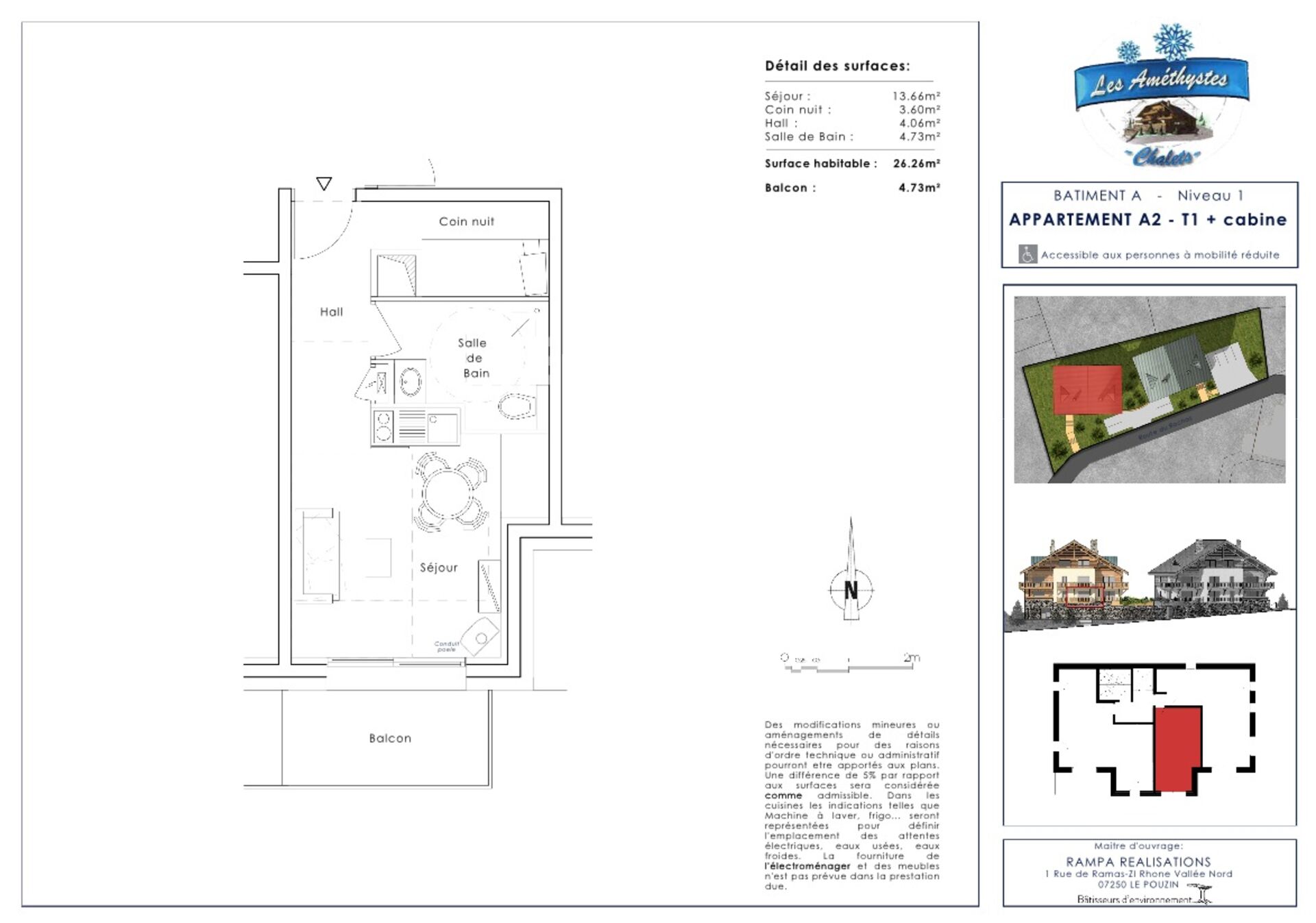 Nous vous proposons à la vente un magnifique appartement de T1 cabine béneficiant d'une superficie de 26,26m2 avec une terrasse de 4,73m2. Vous serez séduit par sa magnifique vue sud.