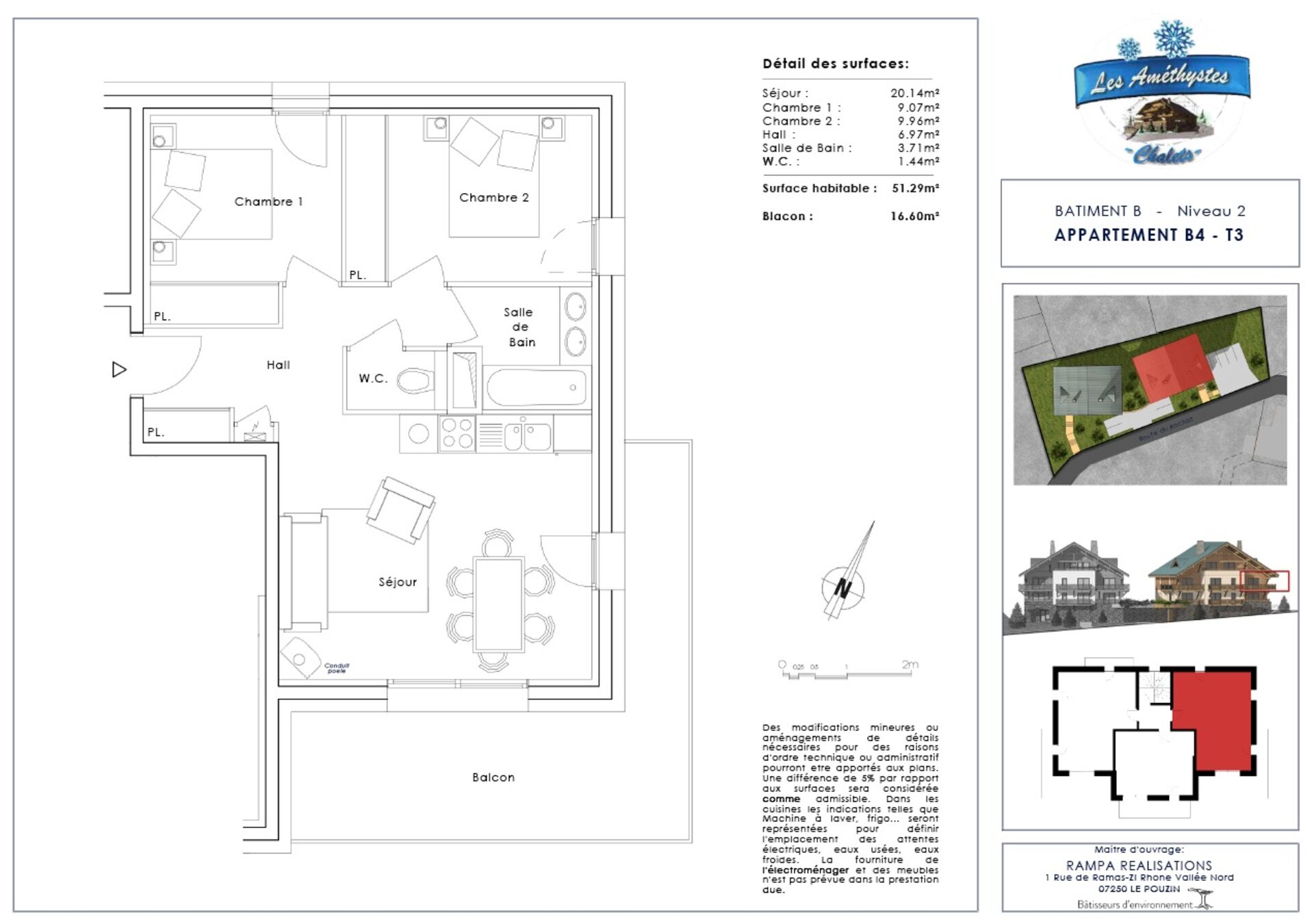 La résidence "Les Améthystes" situé sur les hauteurs confère aux appartements une vue dégagé sur la montagne. Cet appartement T3, béneficie d'une cuisine et salle de bains équipées.